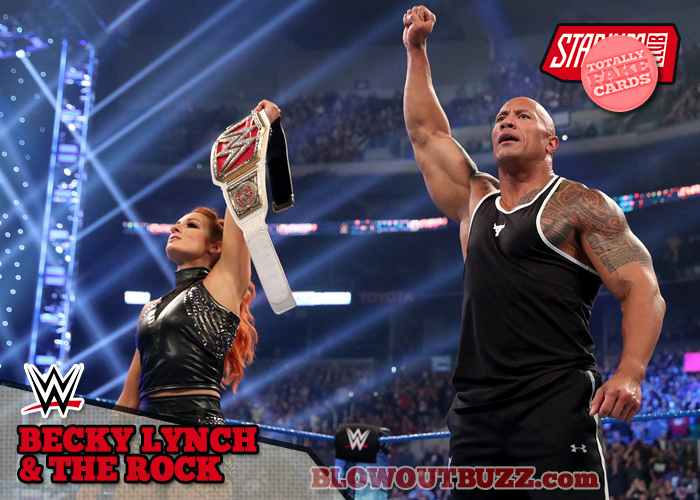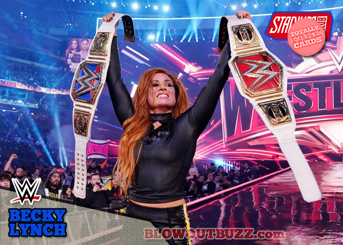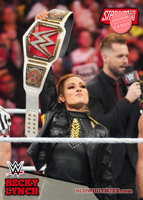 Like entrances, the post-match celebrations are often just as orchestrated to make for good TV ... and they also make for good photos. Here's just one example from when Becky Lynch left WrestleMania with both championships ... oddly, I can think of just two cards that captured this moment (Topps Now releases). There are hopefully others, but I can't think of them. Perhaps there aren't many because of card set arrival times or WWE preferences for other images after she was no longer "Becky Two Belts." (After all, they want new releases to be as accurate as they can when they arrive.) But, a Stadium Club set that intentionally looks at all eras of WWE and any moments could give us all looks back at stuff that was big ... stuff that could make for really good cards (and autographs) unlike others.