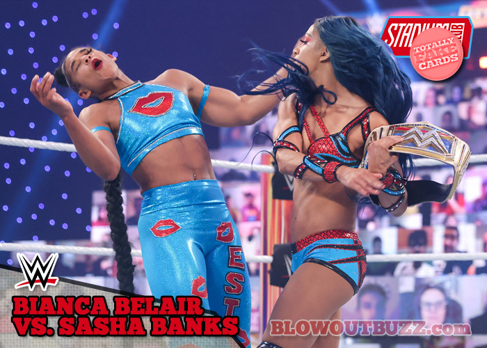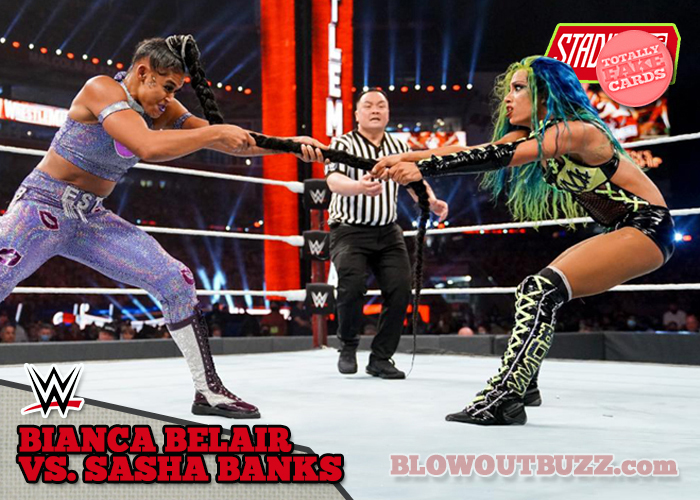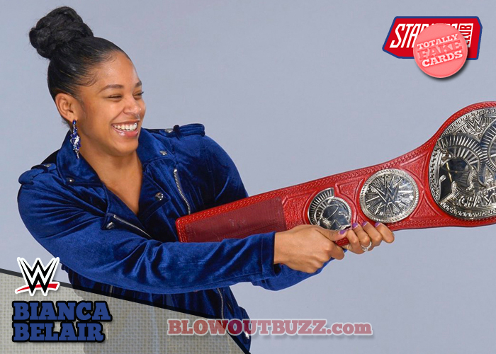 It's a simple enough question, so that's why you see it here has both the headline and the opener -- and there are more than 100 simple fake cards that I've crafted to follow to show just some of the possibilities. It all started with a tweet of the photo you see above of Bianca Belair on the way to the ring for her history-making main-event match at WrestleMania 37 earlier this month. I saw that and followed with a tweet of my own saying "somewhere out there in the world is a Topps Stadium Club WWE set that could be huge."