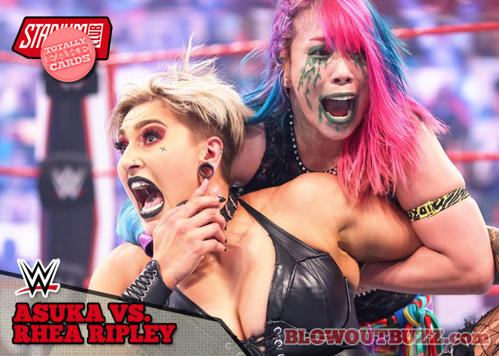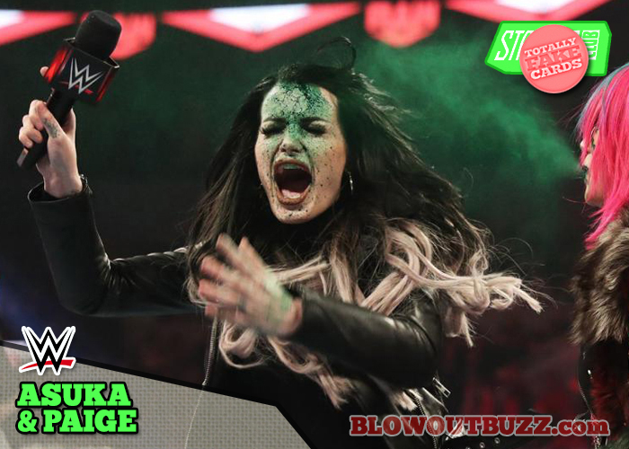If you're old enough to remember the first Stadium Club baseball set, then you probably remember the tuxedo cards that could be found a few times in the first set. Why? I'm not sure we ever found out ... it just happened but as you flipped through a set you'd see one guy in a tux and then another. Then, other cards took over with unusual photos in the mix and those were staples of what made the set different. In the case of my mocks here (see more in gallery) I went for a few combo cards where you see one moment ... and then later in the set there could be a P.S. of something that happened after that. Another way to do this? Using photos of two people on a card and then just one is noted as it being their card -- a cameo -- and then later the same happens with a different image. (Or it could even be the same one later.) Maybe it just amuses me ... but I think it's a way to help make a base card more interesting. This example? Asuka delivering a promo with her then-manager Paige ... and then her mystifying dismissal.