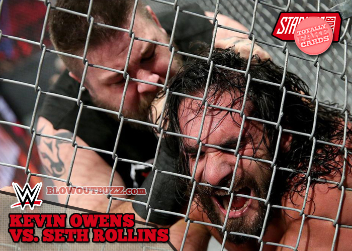 Battles are obviously the bread and butter of many WWE card sets and the moments often do show up in somewhat of a documentary form with sets like Road to WrestleMania going there ... but my gut feeling as a collector is that a lot of those moments can be distant in how they can are presented and since the focus there is only on the last year in action that a lot of gems might not have had their day. I couldn't tell you which cage match this was from between Kevin Owens and Seth Rollins, but the fact that his nose is sticking out of the cage made the photo. See the gallery for more battles and showdowns from the past that caught my eye ... and then consider there are countless other possibilities.