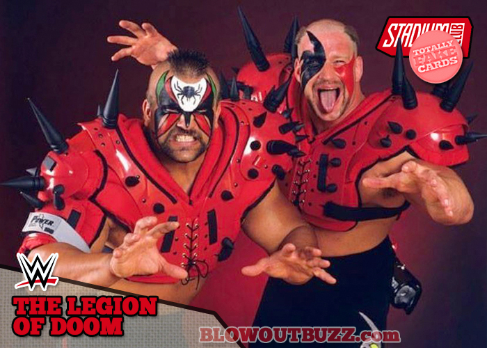 Sure, this is a studio shot of The Road Warriors Hawk and Animal -- aka The Legion of Doom in WWE -- and it's a photo that's been seen a lot in the past, but it's good. Iconic photos of iconic stars can always be revisited to add extra energy -- and to widen the selection on a checklist beyond the, say, 100 or so stars we see all of the time. Think of current Stadium Club baseball sets and imagine them without the surprises from the past ... not as strong. See the gallery for more on this front.
