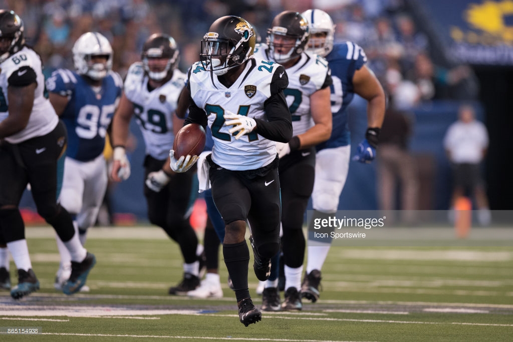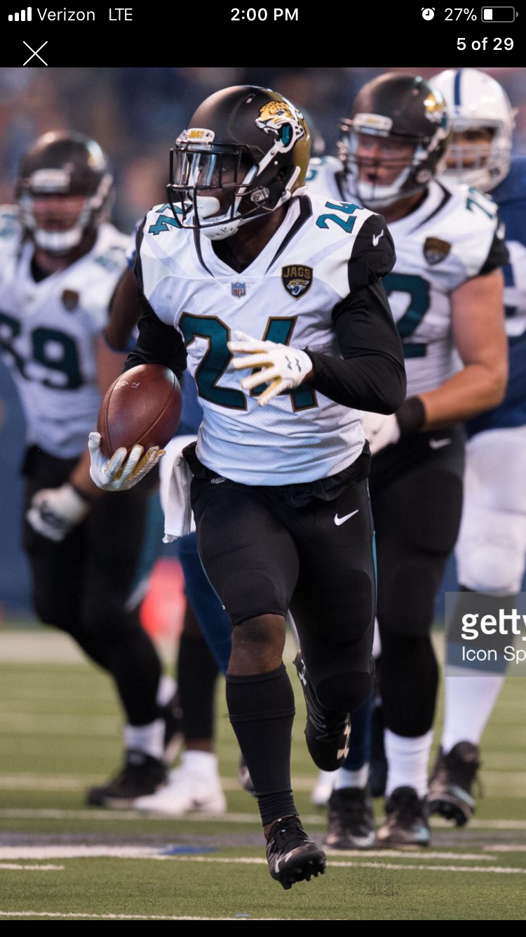 - Getty Images’ Zach Bollinger captured this frame of T.J. Yeldon running for a 58-yard touchdown in the game — a closer view of the ball where you can see the 4 touching the Jags logo.