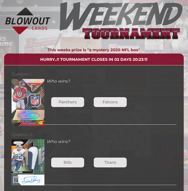 It's solely predictions of who will win this time, and this week's prize is a mystery 2020 NFL box.