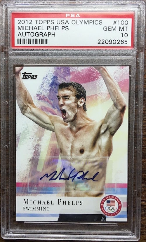 Even the most-established Olympians on cardboard continue to sell well because, again, they just don't have a lot of options for their fans to chase when it comes to certified autographs on cards. The first Olympics set of Topps' recent run was released in 2012 and at that time Michael Phelps had established himself as one of the most-successful swimmers ever. The card you see here? It recently sold for $705 on eBay -- and there's a decent chance other autos just like it are waiting in wax that's unopened right now. (Yes, even 2012 blasters are still available, though once they're gone they're gone.) He's got more than 70 different autos yet they can still sell like that one. (Yes, part of that is probably the grade and slab, but there's still a lot of interest.)